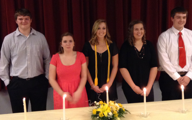 Katahdin Area High School welcomed five new inductees to its National Honors Society during a March 31 ceremony. New members are, from left, John McNally, Shaylee Anderson, Georgia Landry, Haley Landry and Andrew Cummings.