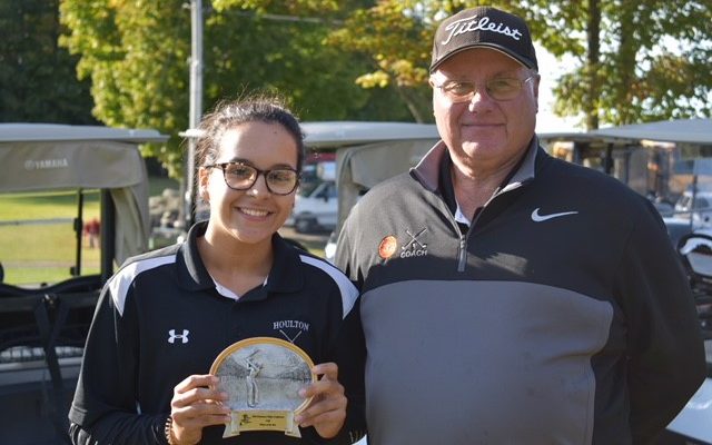 - Rhetta Vega, left, of Houlton was named the Penobscot Valley Conference Class C girls Player of the Year Thursday. With her is Houlton golf coach David Grant. (Courtesy of Jennifer Vega)