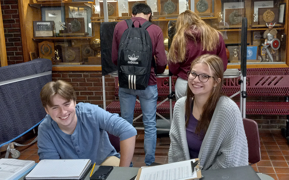 Students from Caribou High School participated in a mock state election on Oct. 25, with some handling the registration books so others could mark their ballots. (Courtesy of Caribou High School)
