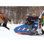 Woodland Scout Troop 186’s Wolverine Patrol heads down the trail during Saturday’s Klondike Derby portion of Winterama 2016, hosted by Caribou Troop 184.